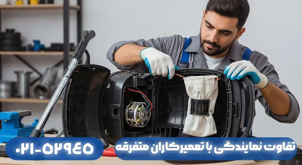 اولین و مهمترین تفاوت، به مرحله عیبیابی بازمیگردد. تعمیرکار متفرقه اغلب بر اساس تجربه شخصی و حدس، اقدام به تعمیر میکند. اگر جاروبرقی روشن نمیشود، احتمالاً کلید را عوض میکند؛ اگر مکش کم شده، موتور را مقصر میداند. این نوع نگاه، سطحی و نتیجهمحور است، نه علتمحور.